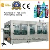 water filling machine is used in packaging carbonated beverageforPET bottles. They achieve filling on different bottle sizes; they adopt hanging type bottle chuck that can change over bottles easily and fast. 1. Adopt hanging bottleneck locked method, convenient to change the type of bottles 2. Spring-type washing and cleaning pliers are applied, empty bottles can automatically turn 180 degrees with tracks, twice washing and cleaning for inside and outside surfaces, the washing and cleaning efficiency 3. Magnetic torque type cap turning can fasten but not damage the bottle caps. 4.The main machine has applied advanced human-machine interfacial automatic control technique. No bottles no filling, no bottles no capping. Transmission way: motor-triangle belt drive-worm reducer Main machines is adopted inverter control technology Main motor: SIEMENS Pump: Nanfang ,Hangzhou touch screen: taiwanweilun PLC: Misubishi Inverter: Misubishi Circuit breaker: Delixi power switch: Omron Model DGF12-6Production Capacity(500ml)b/h 2000-4000Filling Precision Bottle DiameterΦ50-Φ100Height:150-320Suitable Cap Shape Plastic Screw CapWater Pressure of Washing Bottle(Mpa) 0.18Gas Source Pressure(Mpa) Balanced pressureGas Consumption(m³/min) 0.4Total Power(KW) 2.8Total Weight(Kg) 1000Dimension(L×W×H)(mm) 1700×1100×2200